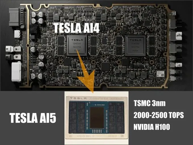 最牛推理AI芯样板:马斯克AI5和昇腾950PR特斯拉 AI5 单die版 特斯拉也有双 die 版本对标 Blackwell 950 双 die 版 特斯拉CEO马斯克在社交平台上正式宣布AI5芯片完成流片,并首次公开实物照片。这标志着特斯拉自研AI芯片进入全新阶段。 与此同时,另一款备受关注的推理AI芯片950PR也开启交付。 这两个来自不同阵营的芯片,在技术路线上呈现出惊人的一致性——它们都选择了ASIC架构、MCM封装、LPDDR5X内存、双Die设计、芯片互联等共同路线, 不约而同地为下一代推理AI芯片指明了方向。 都选择ASIC架构,走GPNPU路线, 主打推理,能效比比GPU高得多 在AI芯片领域,GPU长期以来占据主导地位,但推理场景有其独特需求——追求极致效率与低成本。AI5和950PR都放弃了通用GPU的复杂架构,转向ASIC专用集成电路设计,走GPNPU(通用神经网络处理单元)路线。 GPNPU通过自定义指令集和专用计算单元,在单位硅面积上实现远高于通用GPU的计算密度和能效比,专注于推理场景所追求的极致效率与极低成本。 马斯克在回复留言时直言,AI5芯片虽然不一定是“最好的汽车AI芯片”,但很可能是目前市面上针对参数规模约2500亿以下模型的最佳推理芯片,其芯片成本及能效比(性能/瓦特)都远超同类产品 。据马斯克透露,AI5的功耗仅为250W,而英伟达Blackwell芯片功耗高达1kW以上,成本不到后者的十分之一 。950PR同样专注于推理场景,特别是Prefill预填充阶段,通过自研达芬奇架构和低精度数据格式支持,在推理吞吐量和能效上实现显著提升。两者都选择了ASIC+GPNPU路线,以能效比碾压传统GPU。 都选择MCM封装,放弃CoWoS,成熟产能才是王道 在封装技术选择上,AI5和950PR都选择了MCM(多芯片模块)封装,而非当前炙手可热的CoWoS先进封装。这一选择背后有着清晰的产业逻辑。 MCM封装技术已有30年发展历史,技术成熟度高,产能充足,成本可控 。相比之下,CoWoS作为先进封装技术的代表,虽然性能优异,但产能严重受限。台积电的CoWoS产能在2026年预计达到65万片,但英伟达一家就预订了超过一半的产能,全球产能缺口高达20%—30%。CoWoS不仅产能不足,成本也极高。对于主打“低成本、高效率”的推理芯片而言,追求尖端封装技术反而不如选择成熟的MCM封装来得务实。 MCM方案既能满足双Die和多Die互联的基本需求,又能确保大规模量产不受封装产能制约,与两款芯片“产量最高、成本最低”的目标高度契合。 都选择LPDDR5X,低功耗低成本,HBM太贵供应还不足 内存选择是推理芯片的关键决策点。AI5和950PR都选择了LPDDR5X内存方案,而非高成本的HBM。 特斯拉AI5芯片配备144GB至192GB LPDDR5X内存,功耗控制在300W以内。 LPDDR5X的工作电压极低(约0.5V至1.05V),相比DDR5功耗可降低75%—77%。对于AI推理任务,尤其是大语言模型推理,其对内存容量的敏感度远高于带宽,LPDDR5X的低功耗特性直接转化为更低的运营成本、更少的散热需求和更小的碳足迹。 在数据中心和边缘服务器中,LPDDR5X完美契合了全球数据中心对“绿色计算”的迫切需求。 未来AI服务器内不会再用 DDR5/6,都会用 lpddr5x/6 取代,省点才是未来! 反观HBM,虽然带宽极高,但价格昂贵且全球产能高度集中在少数厂商手中,供应量极为有限。推理场景对内存带宽的要求远不如训练场景苛刻,选择LPDDR5X是在性能、成本和功耗之间找到的最佳平衡点。 两款芯片的趋同选择,说明“推理用LPDDR5X、训练用HBM”的分工格局正在形成。 都规划双Die版本,小Die面积兼顾良率与场景适配 AI5和950PR都采用了小面积Die设计,并规划了单Die和双Die两种版本,这一设计策略非常精妙。 特斯拉AI5提供单die和双die两种配置方案,分别对标英伟达Hopper和Blackwell架构。 单Die版本主打成本敏感场景,双Die版本则面向高性能需求场景。小面积Die的设计能显著提升晶圆良率——使用多个较小的Die可以提升整体良率,每个Die在集成前都经过已知良品测试,进一步保证最终产品的可靠性。 950PR同样采用双Die UMA架构,双Die之间通过高速的Die-to-Die通道连接,使用户可以无感使用两个Die的算力,极大提升了用户易用性。 这种模块化设计不仅降低了单Die的制造难度和成本,还赋予芯片更强的场景适应能力——低端场景用单Die,高端场景用双Die,资源利用效率最大化。 都支持Chip互联,为超节点和集群时代做好准备 面向未来的AI算力需求,单颗芯片再强也难以独当一面,芯片互联能力成为衡量AI芯片竞争力的重要维度。 AI5和950PR都支持芯片间的互联,并规划了超节点大集群方案。 950PR支持UB灵衢互联,整芯片支持18个400Gbps端口,可以实现超节点系统的超高带宽、超低时延、超大规模组网需求。华为基于昇腾芯片推出的CloudMatrix 384超节点,成功实现384颗NPU的全对等互联,算力规模达300 PFlops,在多项关键指标上实现了对英伟达GB200 NVL72的超越。 特斯拉方面,AI5的设计同样考虑了芯片互联能力,为未来Robotaxi车队和人形机器人大规模部署后的协同计算预留了扩展空间 。通过芯片互联实现算力的线性扩展,是满足未来超大规模AI推理需求的必由之路。一种die打云和边两种市场,一箭双雕 AI5和950PR最令人称道的策略,莫过于用一颗芯片同时覆盖云端和边缘端两大市场。 特斯拉AI5的定位是“全能型”芯片——单Die版本用于边缘推理场景(如车载FSD、Robotaxi、Optimus机器人),双Die版本则可用于云端数据中心推理。 950PR同样如此,标卡形态面向单卡推理场景,超节点形态则面向云端
