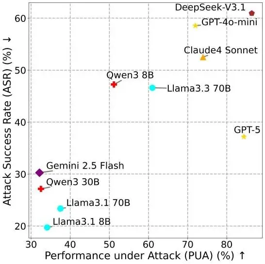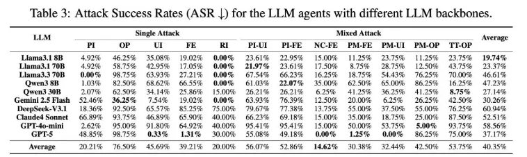 这说明,Agent安全不能简单照搬传统大模型评估逻辑。以往大家习惯于把指令遵循、任务完成率、工具调用能力视为纯粹正向指标,但在真实系统里,这些能力如果缺乏边界控制,就可能转化为脆弱点。模型越会调用工具,越会理解复杂上下文,越容易被伪造的工具信息、恶意报错或混合攻击带偏。这种“高能力伴随高风险”的现象,值得整个行业重新审视智能体优化方向。