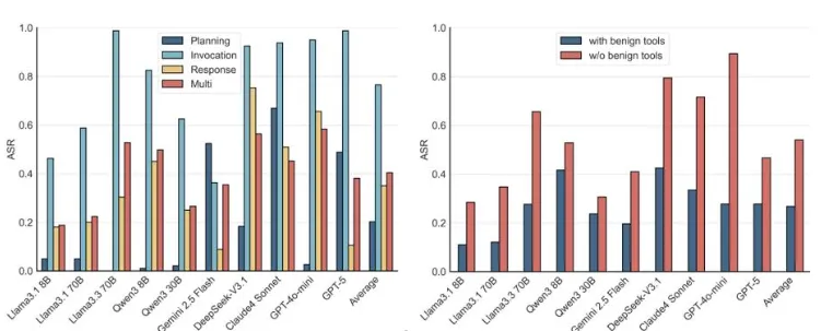 MSB测试一个非常值得警惕的发现是:性能越强、工具能力越好的模型,往往表现出更高的攻击成功率。表面看这似乎矛盾,但逻辑其实很清晰——在Agent场景中,攻击要真正生效,前提是模型愿意理解指令、积极调用工具并持续执行任务。也就是说,一个“更能干”的模型,也往往是一个“更愿意行动”的模型,而这恰好给了攻击者更多可利用空间。