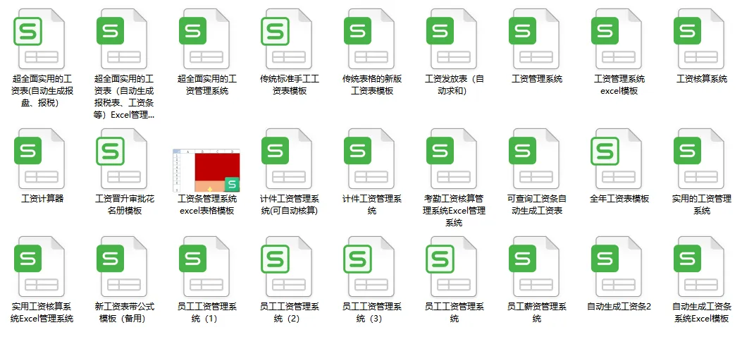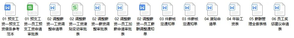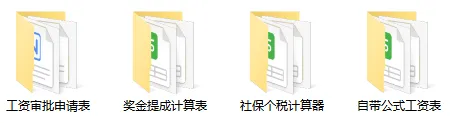 《工资核算资料包》内含自动生成工资条的工资模板,销售提成计算模板、预支工资审批表、预支借条范本、社保个税计算器、工资调整申请审批模板等52份文件。