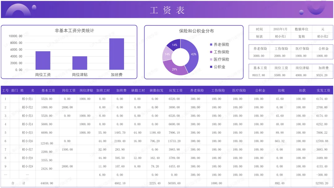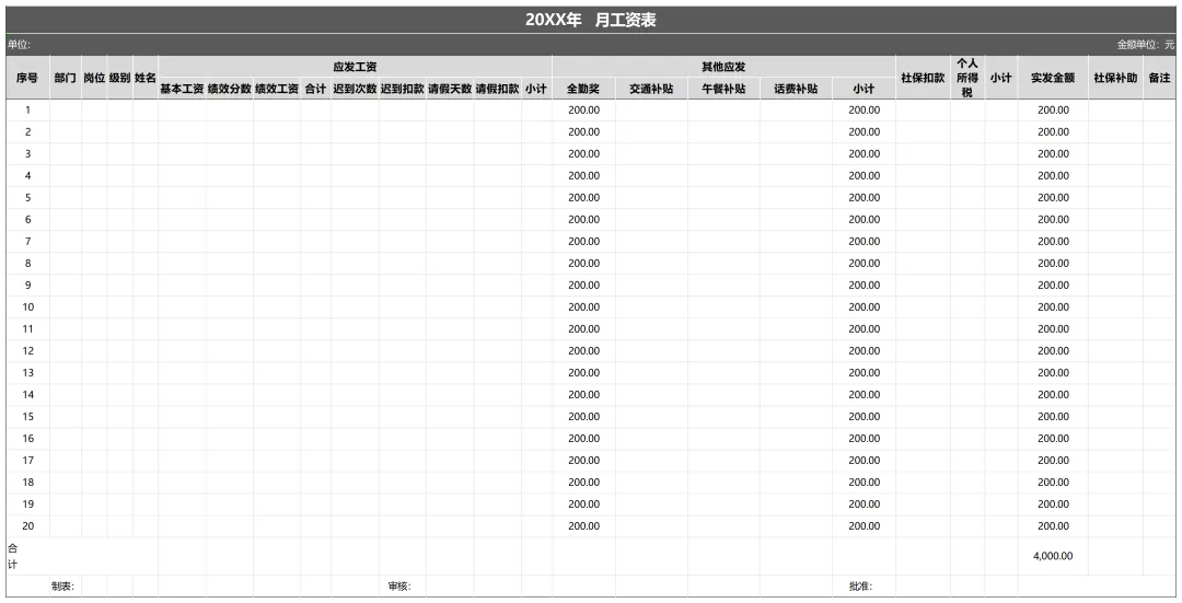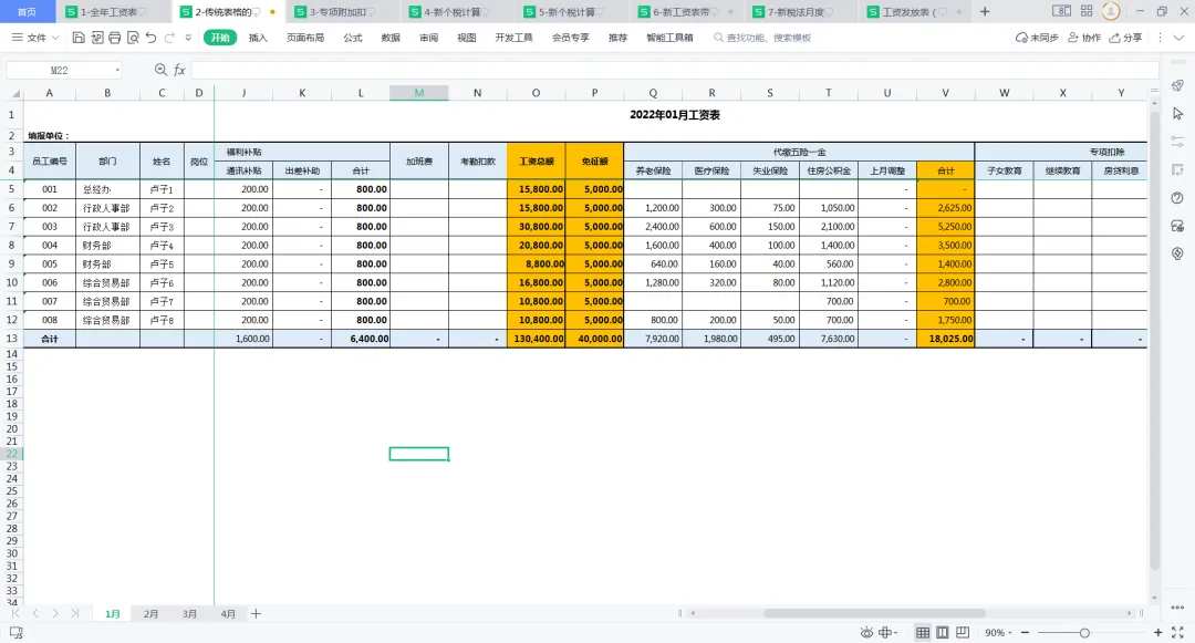 ▼ 传统手工工资表标准模板(自动求和).xls