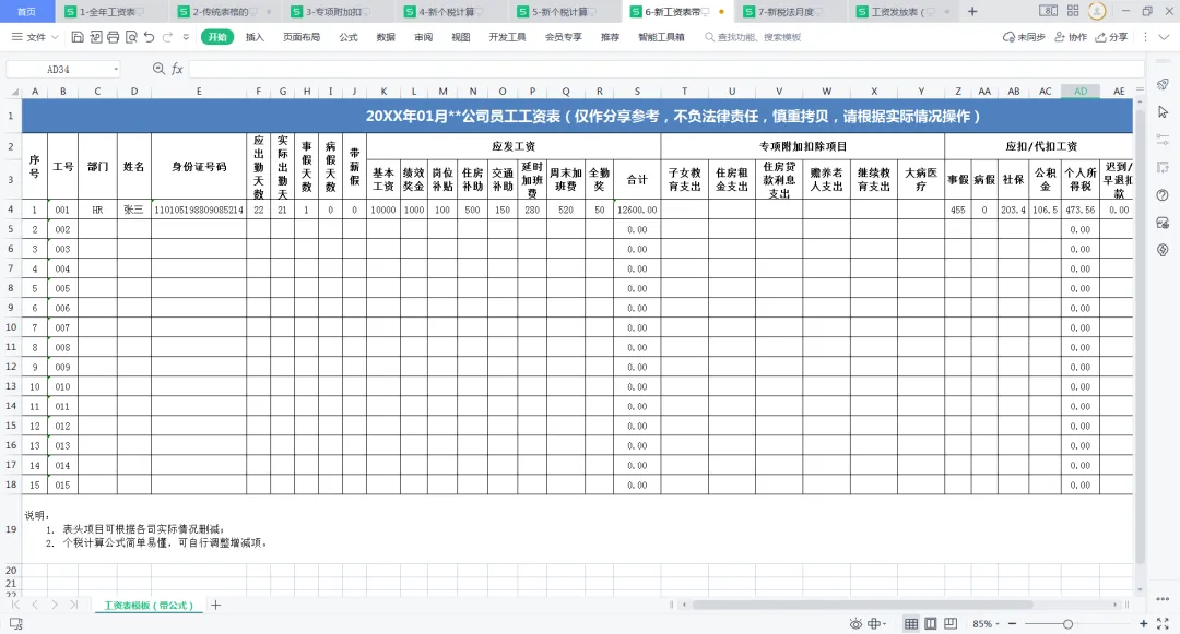 ▼ 新版自带公式传统工资表模板.xls