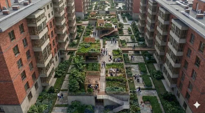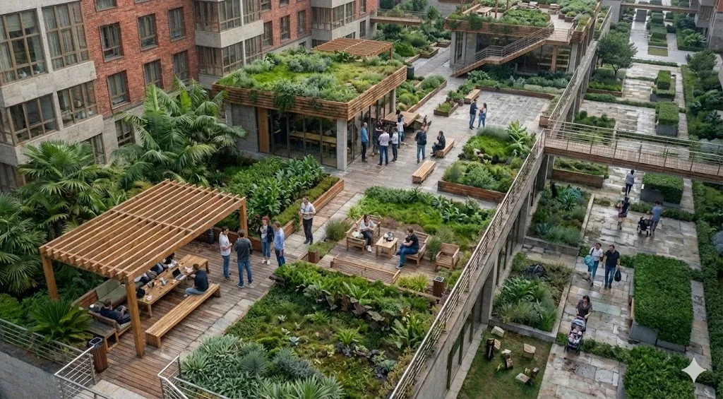 ▸ 屋顶花园选用乡土植物,打造低成本、易维护的生态景观。