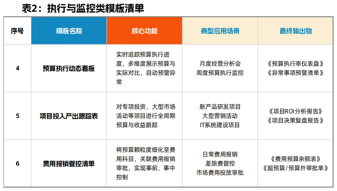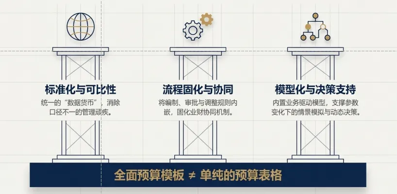 模板对预算落地的支撑价值主要体现在下面三个维度。