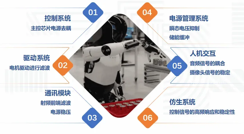 如在控制系统中,MLCC用于主控芯片电源去耦,确保机器人的运动规划算法实时运行无延迟;在驱动系统中,伺服电机逆变器的母线电容需采用高电压MLCC,承受200V以上脉冲电压,为电机驱动滤波等。