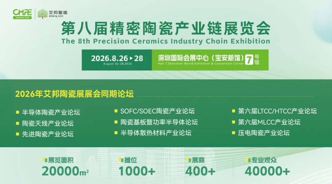 推荐活动二:艾邦第八届精密陶瓷产业链展览会【2026年8月26-28日深圳国际会展中心7号馆(宝安新馆)】
