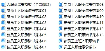 《入职承诺书》资料包内含16份新员工入职承诺书范本,内容完整,全面细致,非常实用。