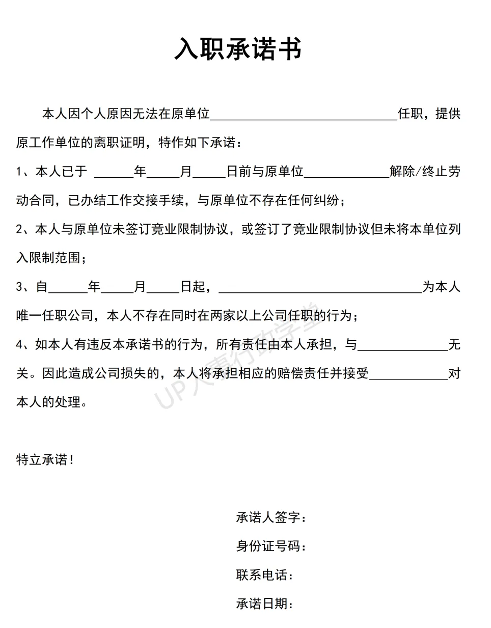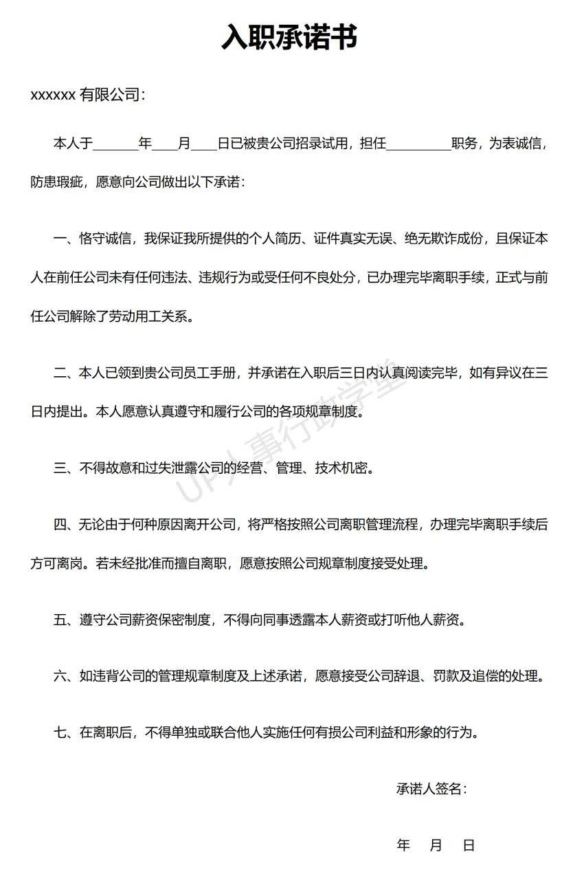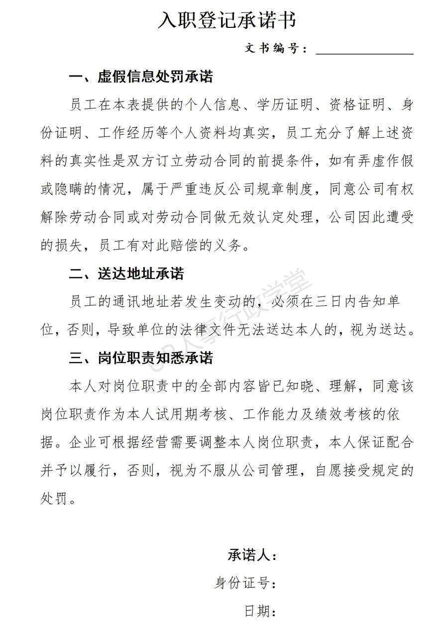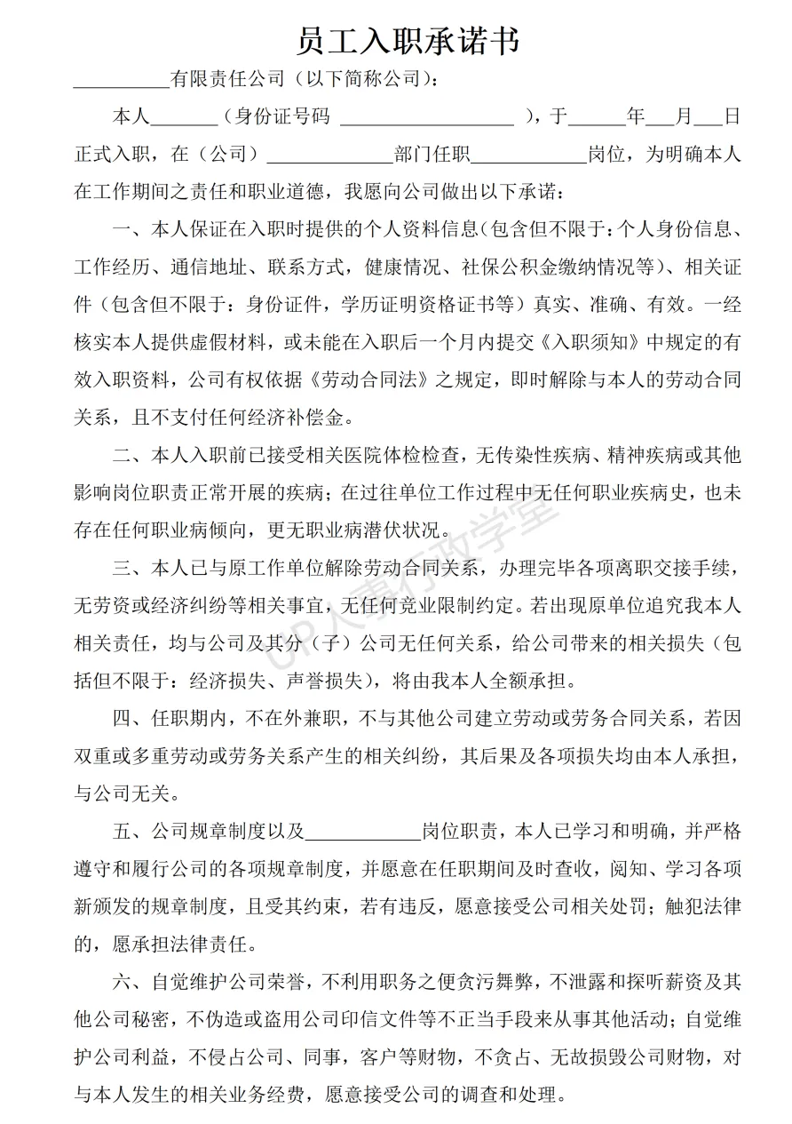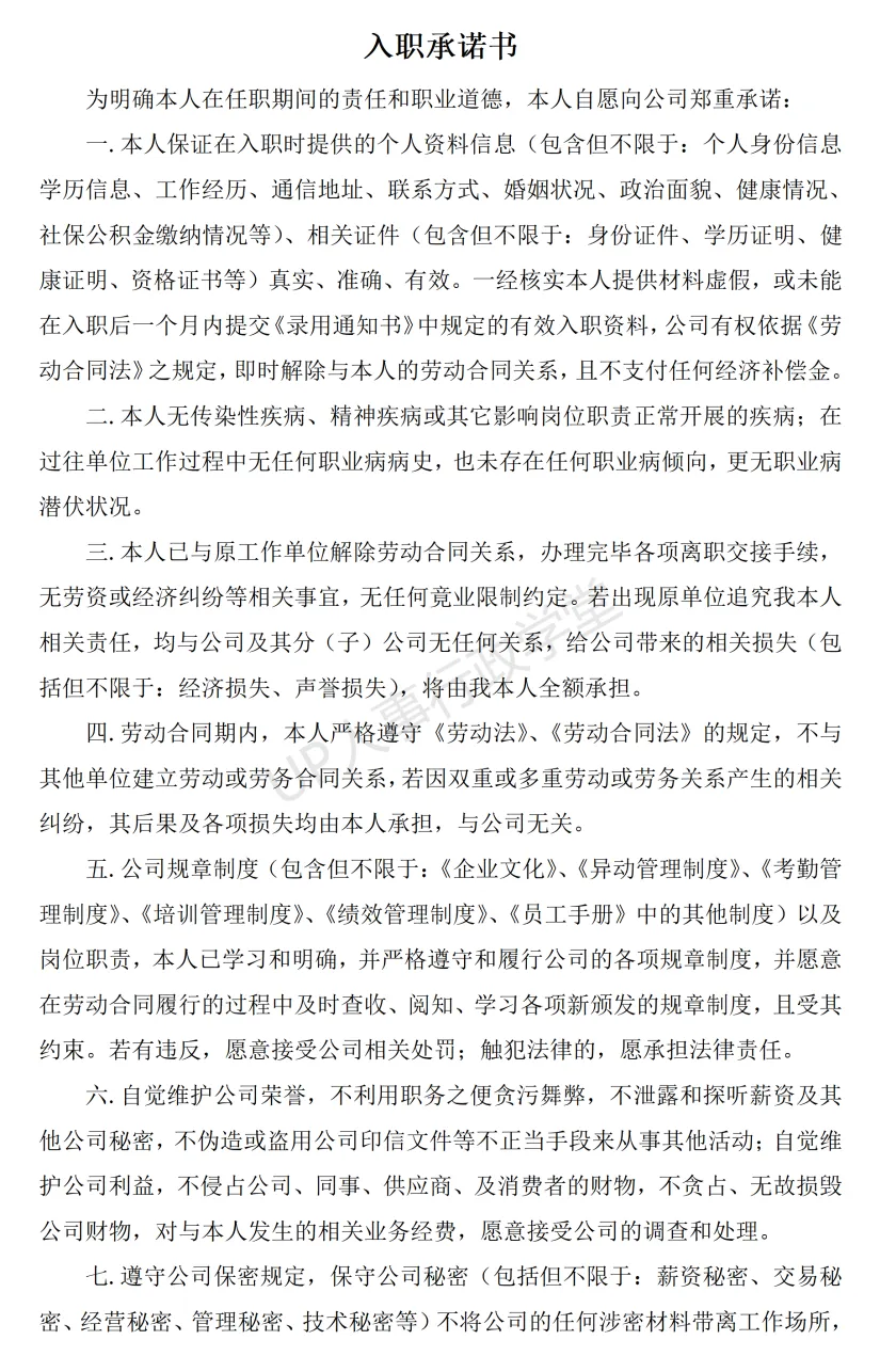 文件夹位置:人事行政表单—041 入职承诺书