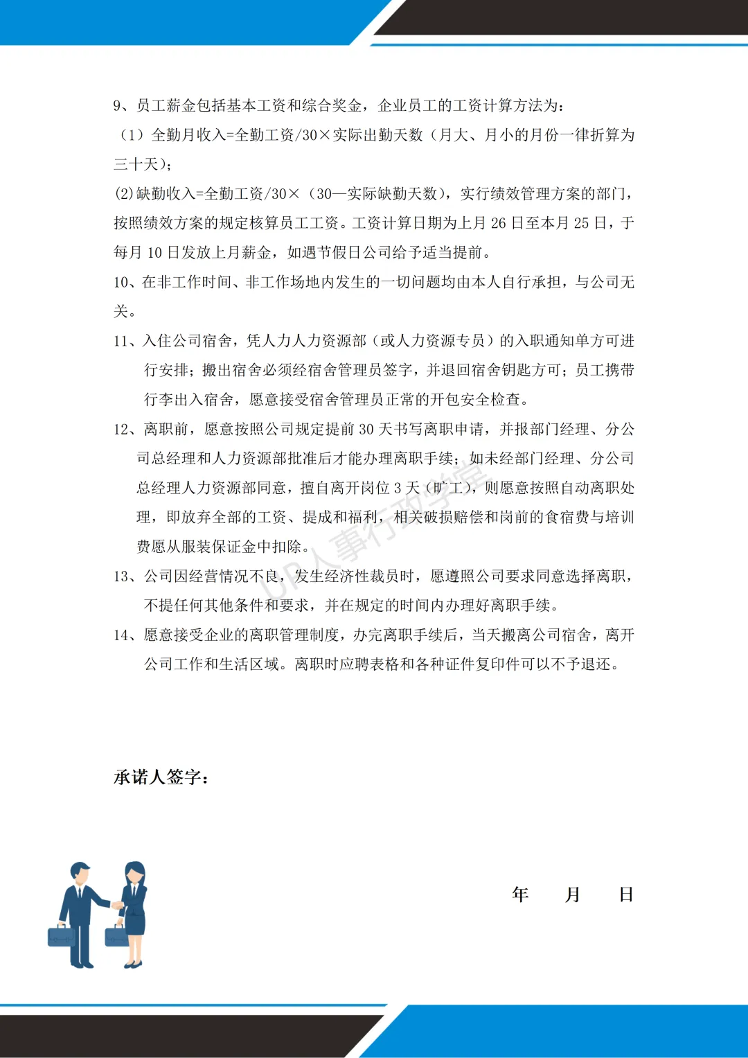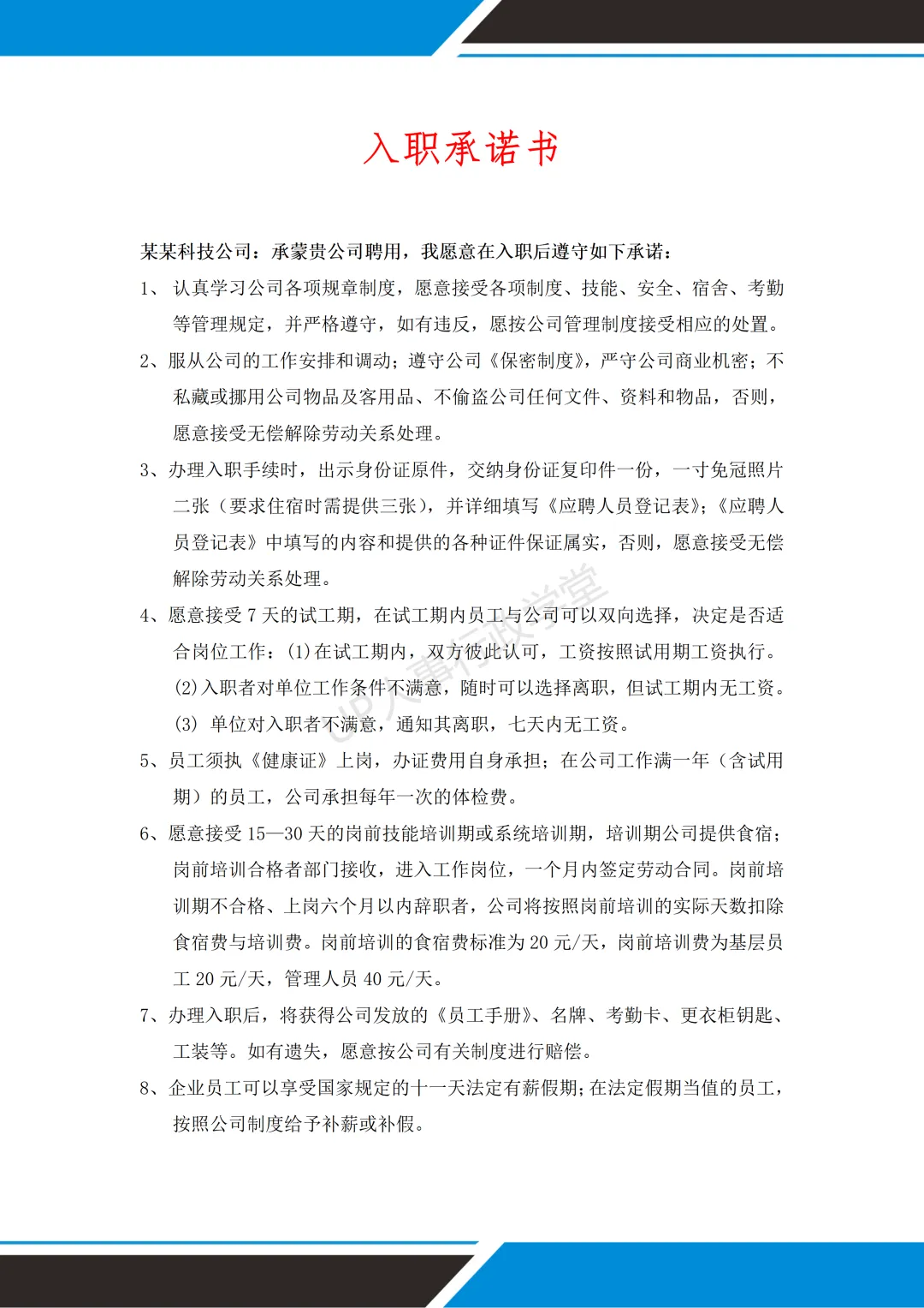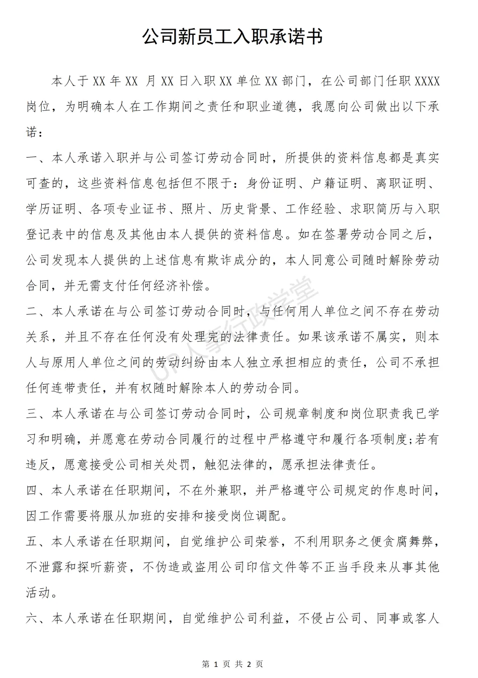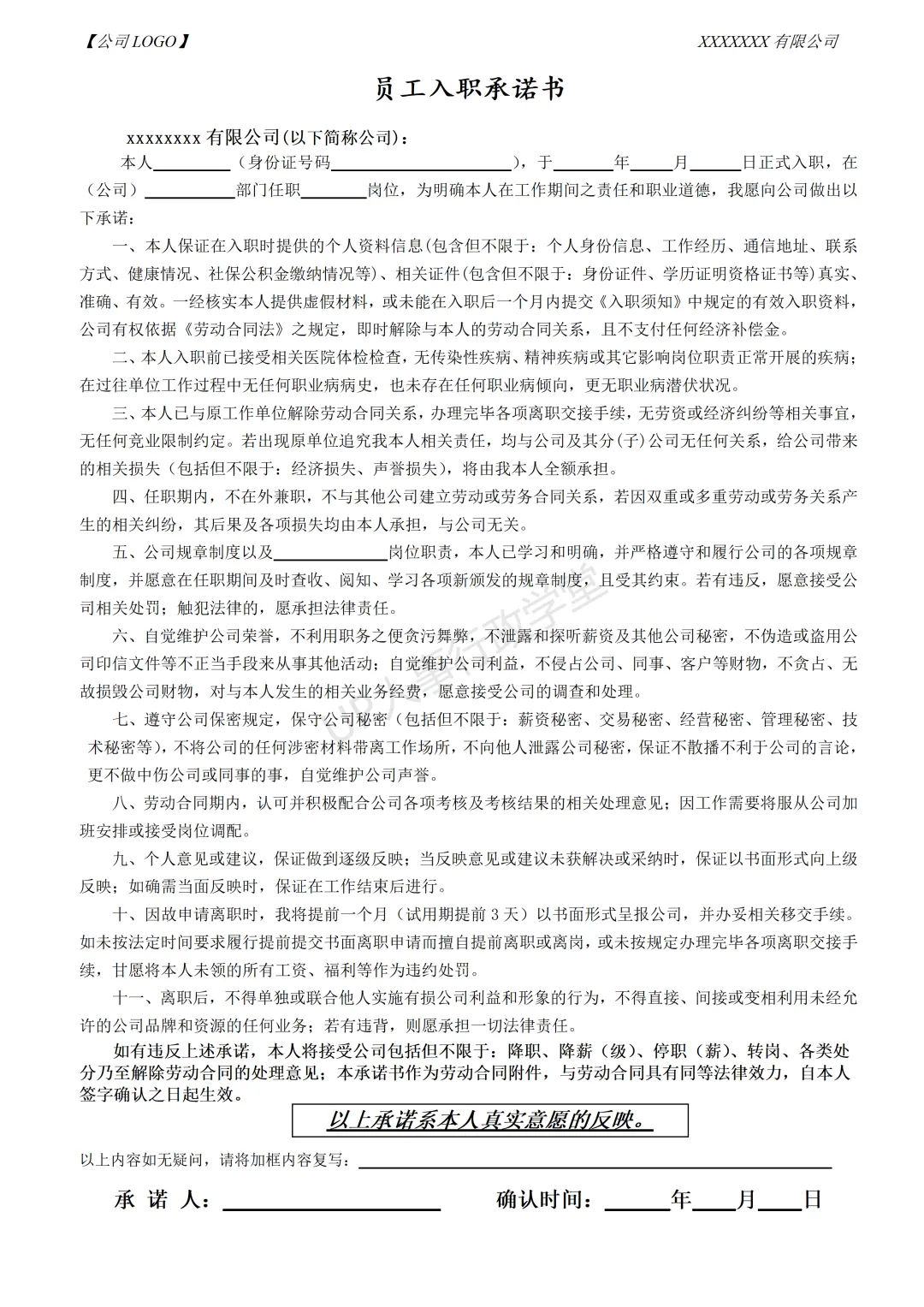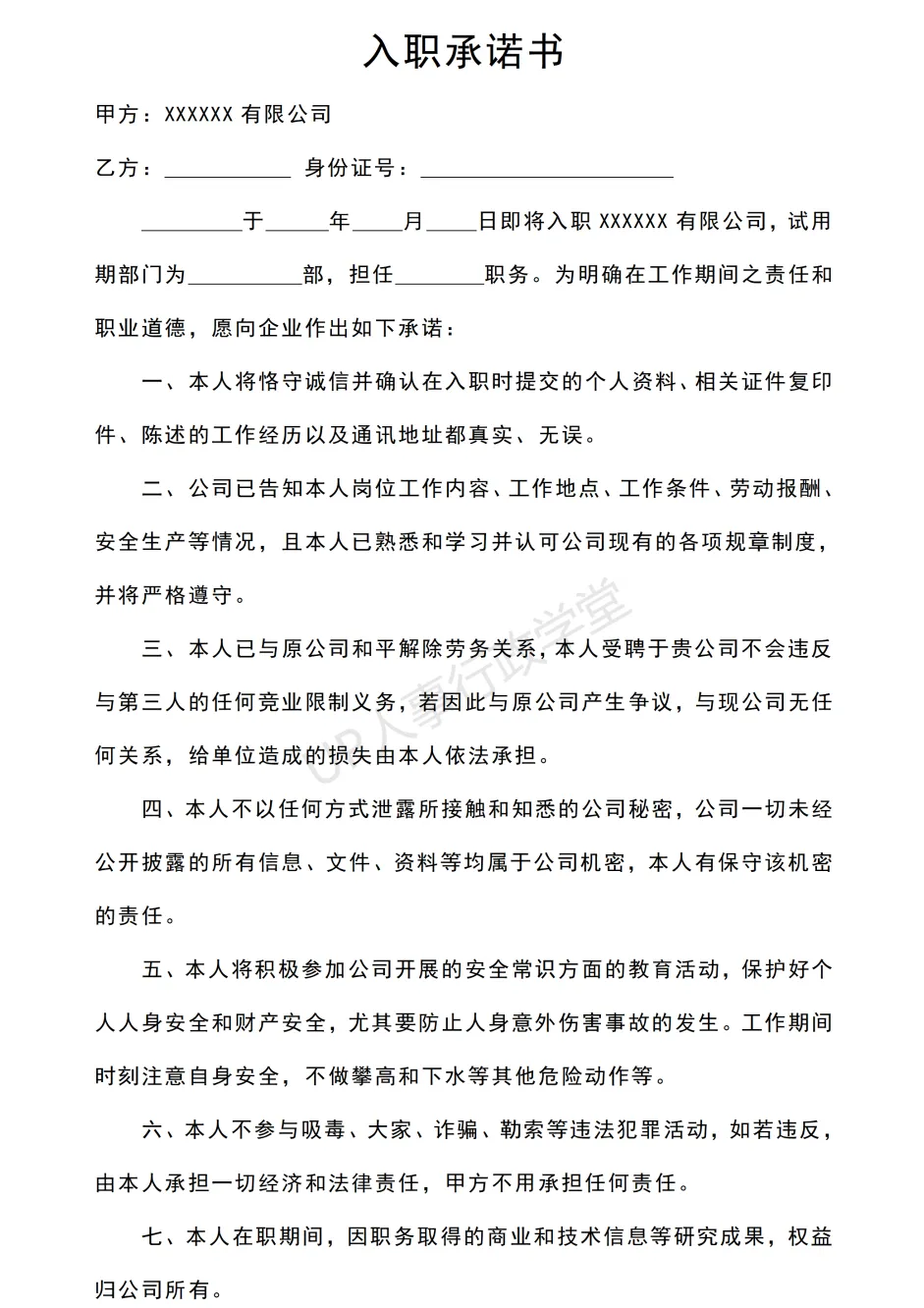 文件夹位置:人事行政表单—041 入职承诺书