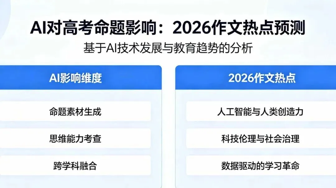 从“考知识”转向“考提问”:在信息触手可及的时代,核心能力变成了“如何提出好问题”。未来的题目会更多要求你辨析逻辑漏洞、评估观点优劣,而非单纯复述知识点。