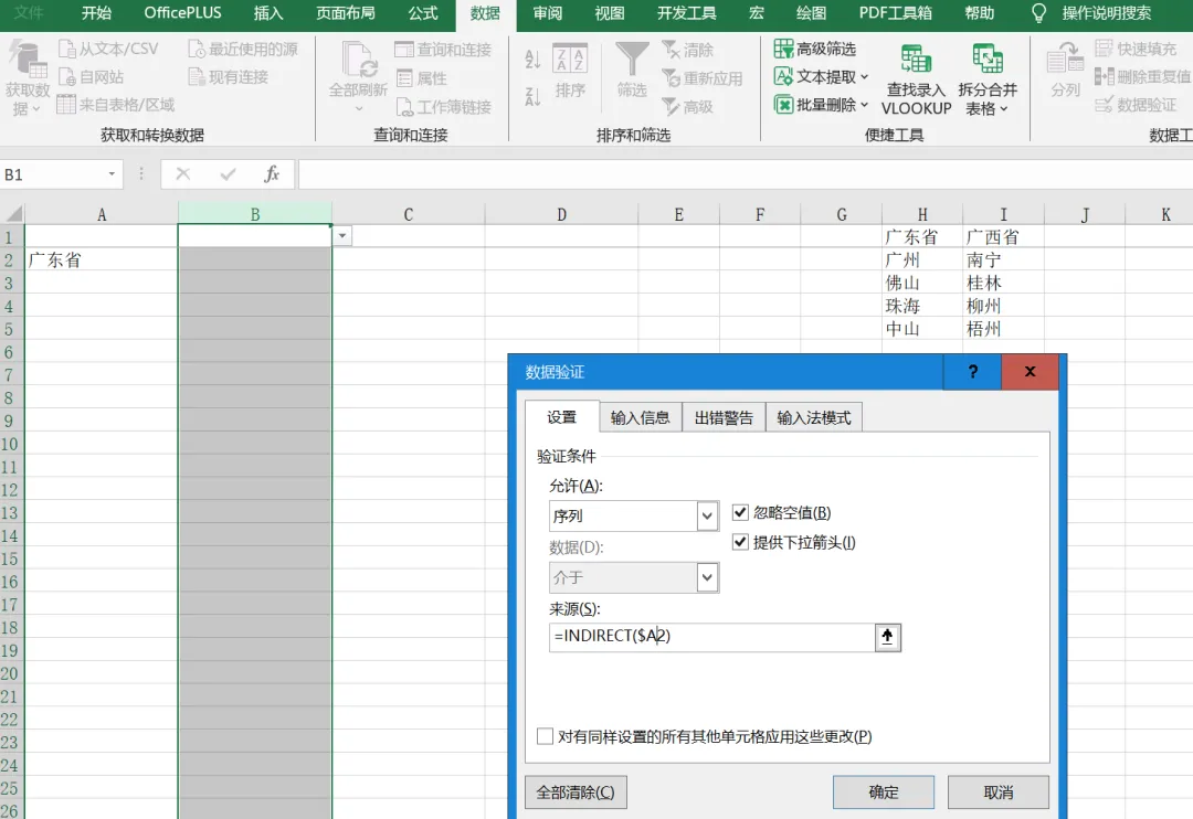 选中要放二级下拉的单元格(例 B2)。 数据 → 数据验证 → 允许选 “序列”。 来源:输入公式 = INDIRECT ($A2) , ($A2)是一级下拉单元格,绝对引用保证联动)。 勾选 “提供下拉箭头”,确定;完成联动。