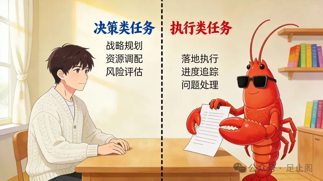 "收到。但需要明确边界:我可以安排执行类任务(如推送、整理、提醒),但决策类任务(如选题方向、发布确认)仍需你拍板。这样可以吗?"