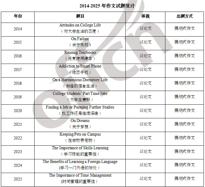 陕西专升本英语作文基本每年考的方向很固定,出题方向基本与大学生生活学习息息相关,如学习、时间管理、大学生兼职、宿舍生活、失败、生活态度等等,如下图↓