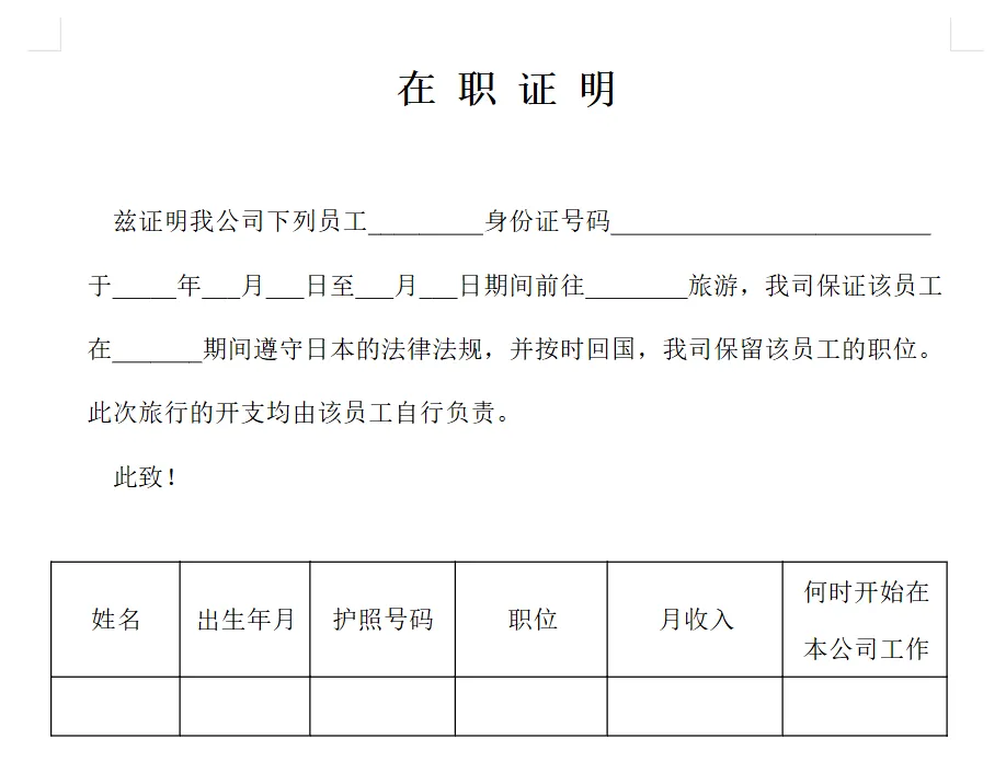 - 签证办理:旅游签(如欧美、日韩)、商务签、探亲签等,使馆需通过在职证明确认 “无滞留风险”,通常要求加盖公司公章 + 注明 “准假时间”;