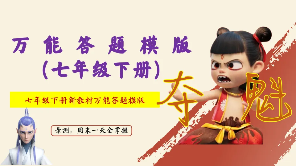 万能答题模版!七下道德与法治新教材全册万能答题模版来啦(学优生版+小后生版+集训版)本期分享:看到主题答什么,请用万能答题模版!往期精品推荐:以下复习资源也是精品哦,强烈推荐省培!余韵绕梁!七年级新教材第一单元《珍惜青春时光》复习课(小学生回复大学生问题融入,课件+教案+讲义+模考题)精品复习课超带劲!七年级第二单元《焕发青春活力》复习课(课堂融入了张雪机车夺冠事件,课件+教案+讲义+模考题)往期精品推荐七下全册思维导图挖空版+答案版思维导图集训版如需要请+VX:a1730908539精品!!重磅!!必胜分享,成功继续· The End · 更多资源,加我微信:a1730908539关注,在看,好运不断!愿幸运、幸福与成功统统走向您!求分享求收藏求点赞求在看