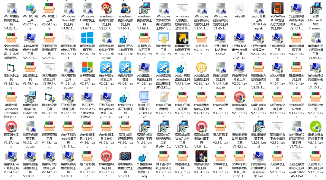 解压后打开文件夹,有200余款绿色小工具,涵盖显卡驱动卸载、DLL 修复、Office 卸载与激活等常见场景,无需安装,双击即可运行。