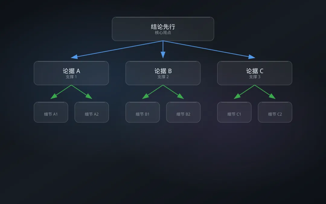 原则 1:结论先行(Top-Down) —— 任何表达都应该先给出核心结论,再展开论据。