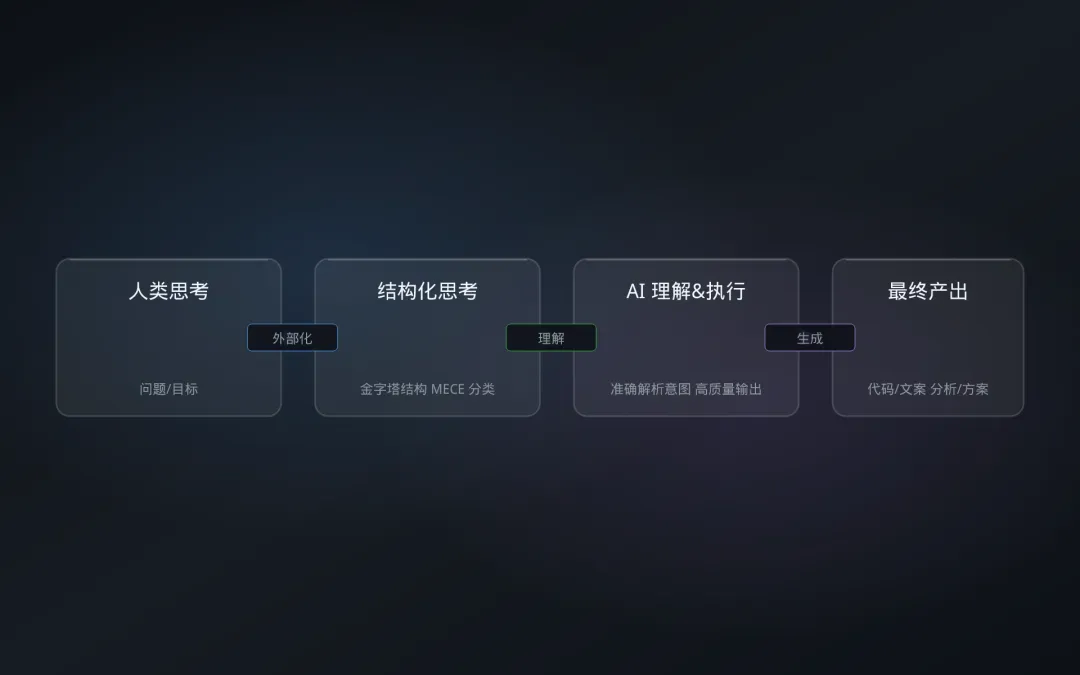 首先,结构化思考是与 AI 高效协作的前提。AI 是概率生成机器,提示词的质量直接决定输出的质量。而高质量的提示词,本质上是结构化思考的外部化。