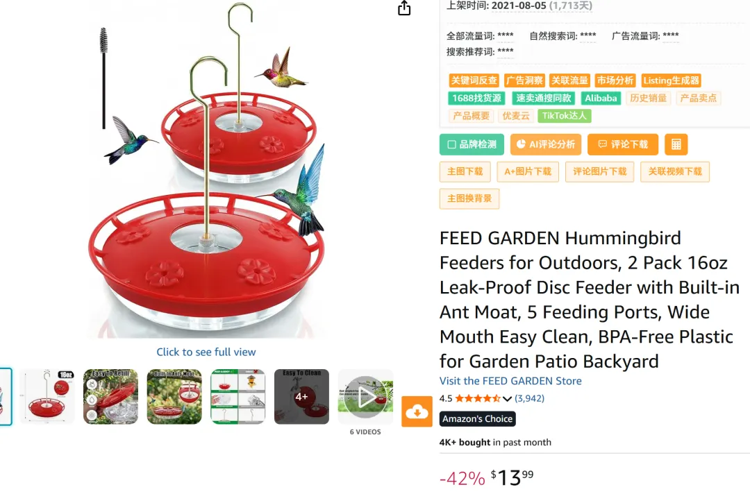说真的,我为啥会去碰这些野路子工具?还不是因为手动扒数据太痛苦了!就拿这个蜂鸟喂食器来说,之前手动做竞品分析,要一个个翻 ASIN 详情、算优惠、盯 BSR 排名,反查流量词挖到眼瞎,还经常被表面数据骗,选品踩坑亏了好几万,才想着找 AI 偷懒,结果差点把自己玩进去。