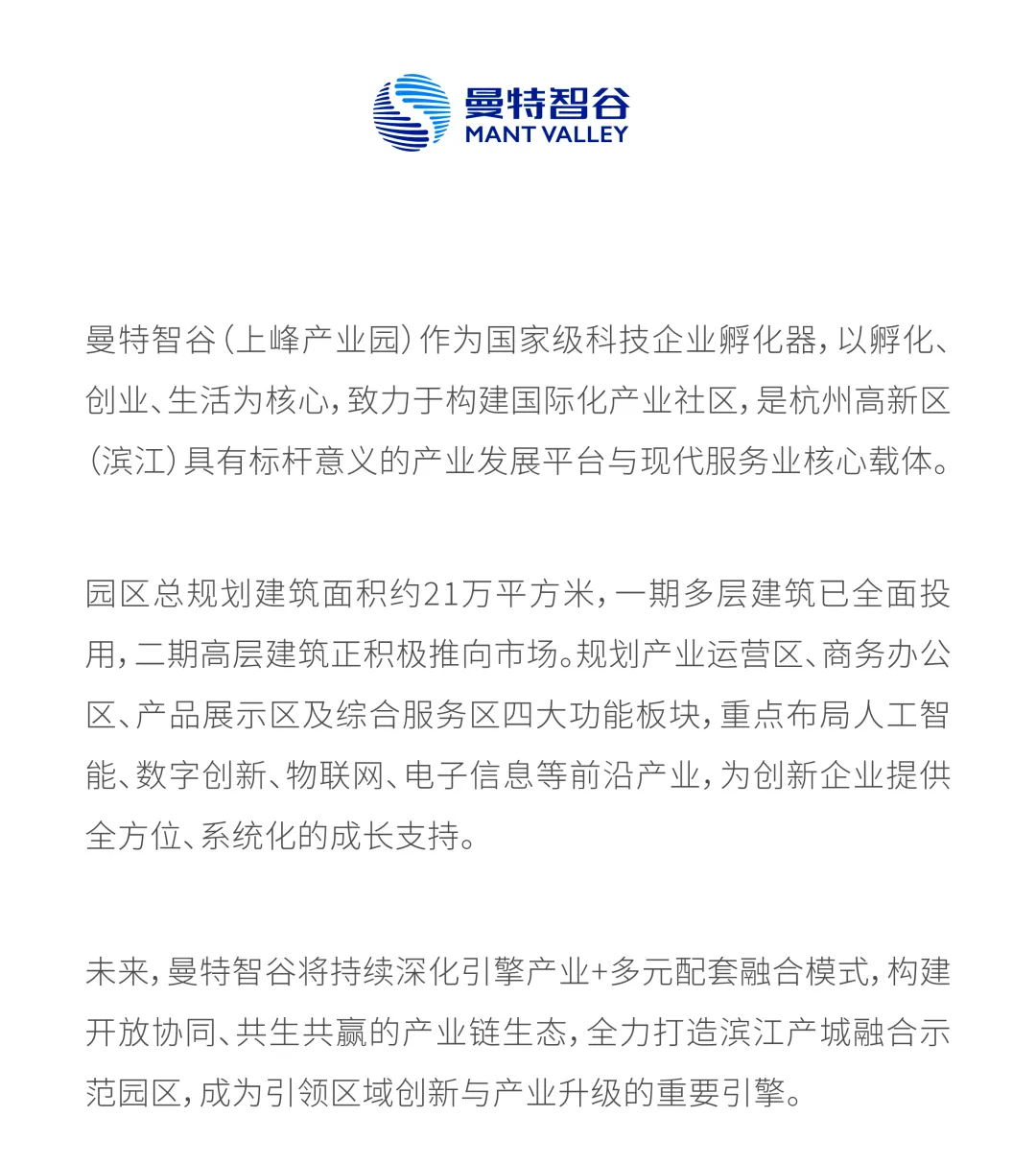 从电商时代的上峰,到AI时代的曼特智谷——我们始终扎根滨江,我们正在践行一个真理:真正的产业高地,不是等风来,而是与城市共振,让风从这里起。