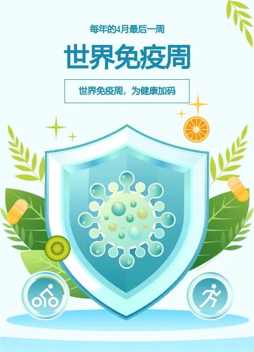 替换文字: 在编辑区直接点击模板中的文字进行修改,输入你的免疫周相关内容。可以调整字体大小、颜色等基础格式。