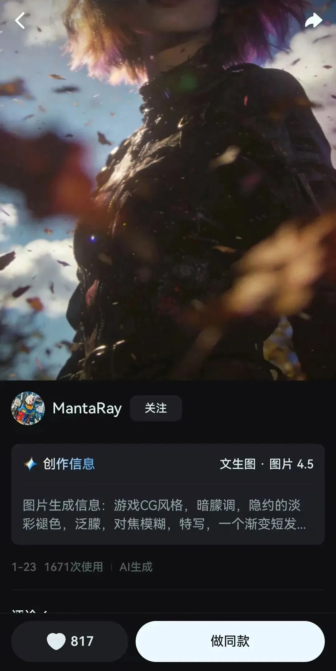 看看他们用了什么提示词 试着复制他们的提示词,看能不能生成类似效果 收藏你觉得好看的风格
