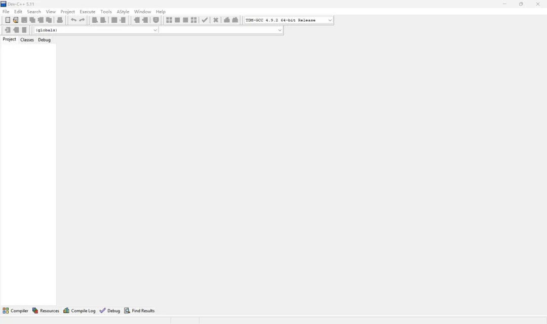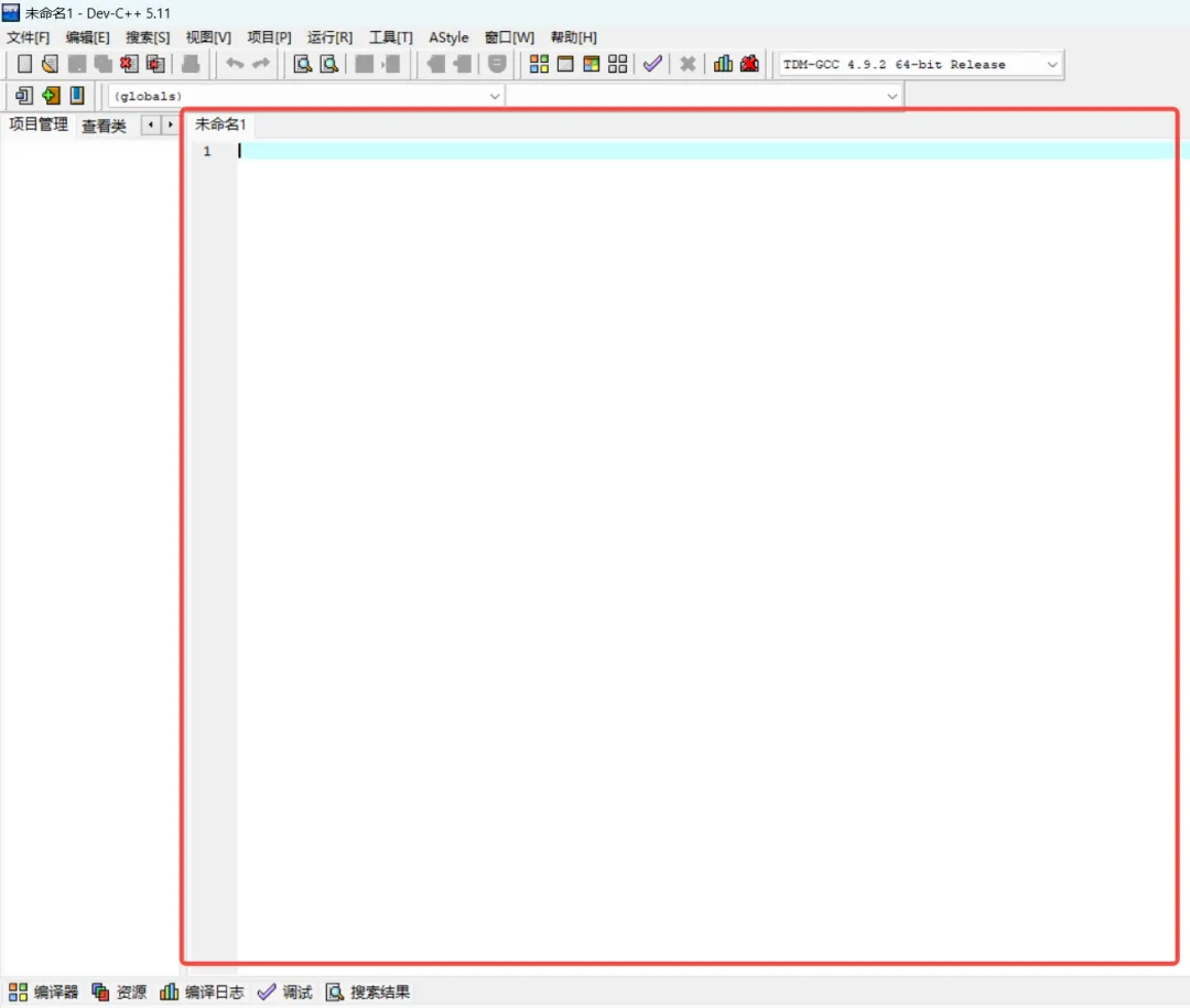 之后,咱们就算完成了DevC++的整个安装工作啦~你会看到一个这样空旷的主页