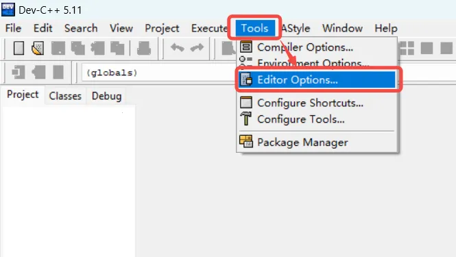 点击tools(工具)栏中的(Editor Options...)环境选项~