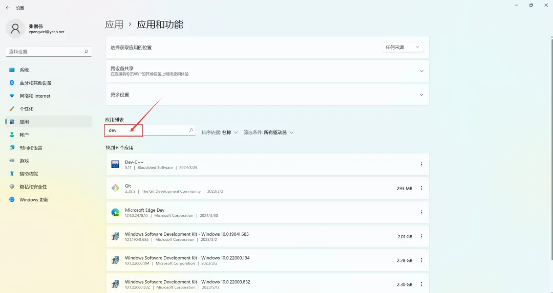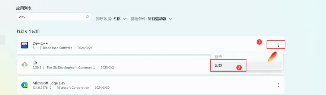 如果不再需要devC++的时候,就可以直接卸载掉,在【开始】菜单中,搜索【添加和删除程序】,然后搜:DevC++,就能找到: