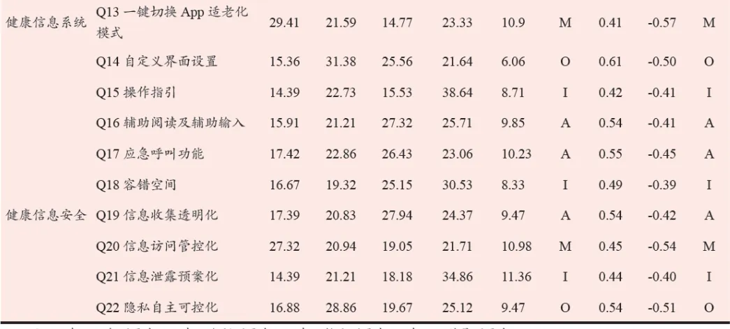表 4 政务 App 老年用户健康信息需求 Kano 模型