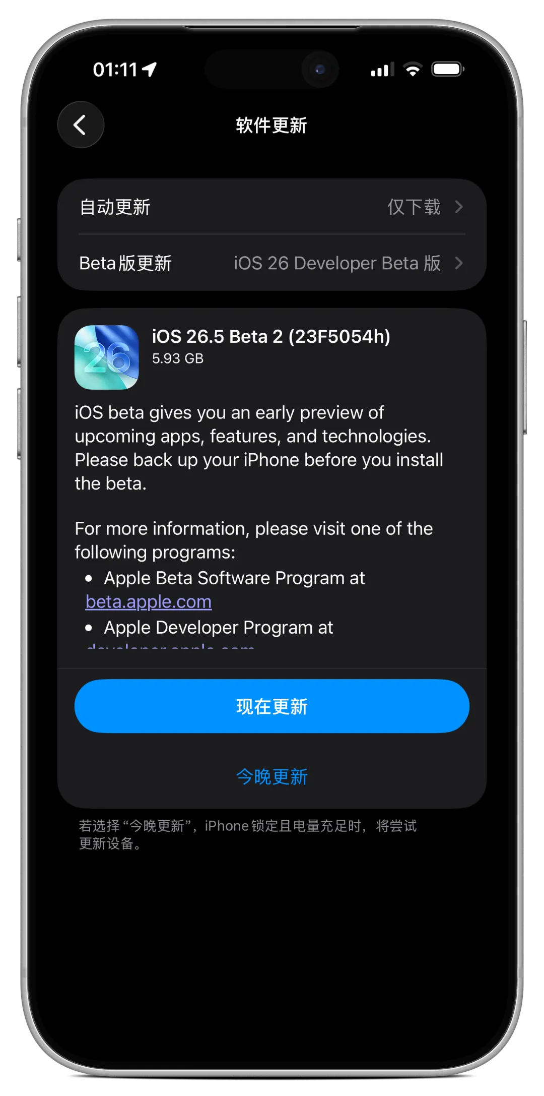 刚把系统拉到 iOS 26.5 Beta 2,第一眼落在那个动画上,解锁进主屏那一下,图标该落位不落位,最后一帧像被按了暂停,手指收回来了画面还迟一下,帧率往下一滑,顺滑感断了一截,测试版的味道在这露头,研发还在推进,修补排队,按节奏跟进就行。