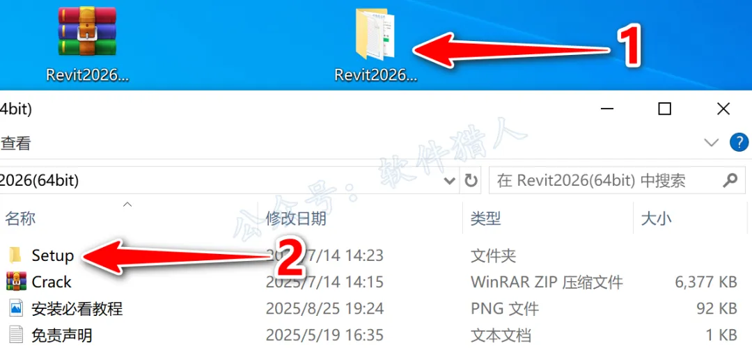 1.关注本公众号后回复“revit”,即可获取最新安装教程(页面里附有下载链接,若失效会维护),小编将下载好的压缩包移动到桌面并右键解压到当前位置,方便安装后即将安装包删除。(没有解压软件?点我查看解压教程!)
