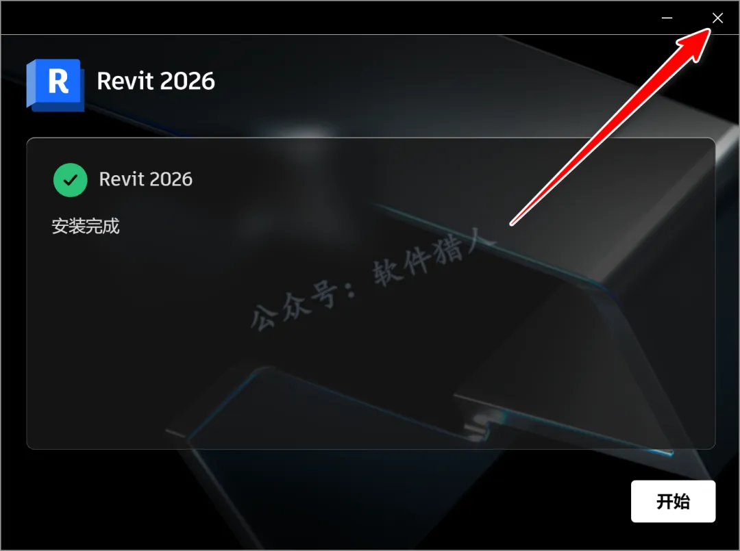 8.界面显示“安装完成”,点击右上角【X】关闭。