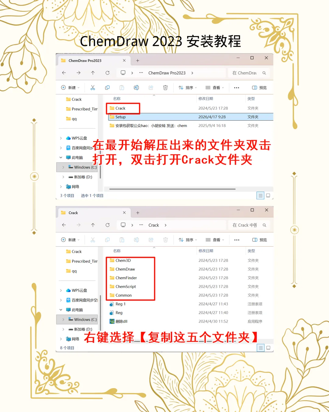 1. 复制:打开解压出的Crack文件夹,全选复制其中的5 个文件夹。