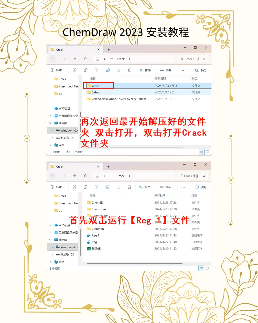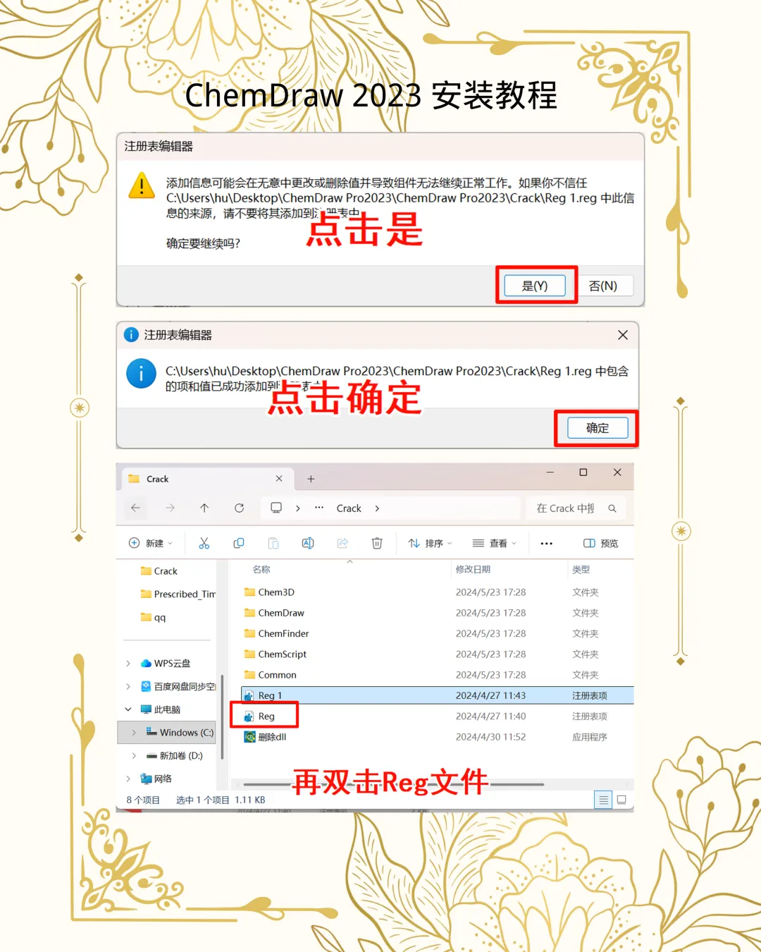 1. 注入:依次双击运行 Crack 内的两个 **Reg 文件**,并确认导入。