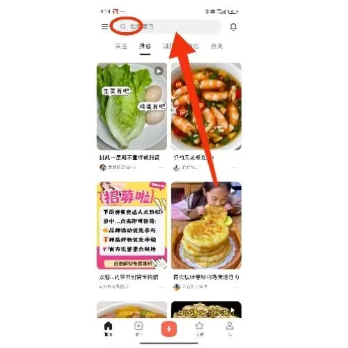 打开下厨房App,看屏幕最顶部,有一个放大镜图标(像一个小圆圈带个把儿)。点一下这个图标,屏幕上就会出现一个白色的长条框——这就是搜索框。