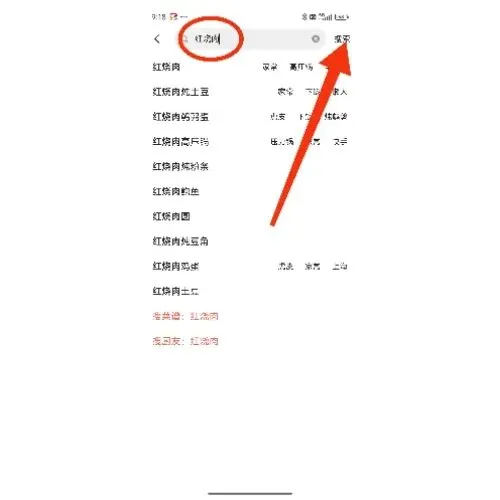 点一下搜索框,手机键盘会弹出来。你想吃什么就打什么字,比如“红烧肉”。打完后,点键盘右下角的“搜索”按钮(有的手机显示是“回车”或一个放大镜图标)。