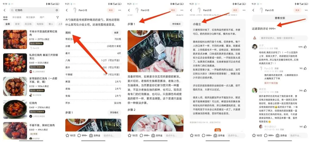 等2-3秒,屏幕上就会出现几十种红烧肉的做法。