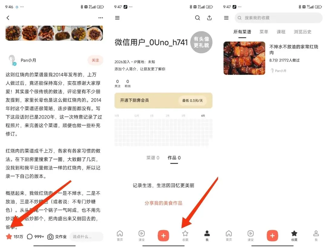 下次做菜时:打开下厨房 → 点右下角“我的” → 点“我的收藏” → 就能找到它。