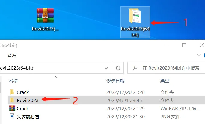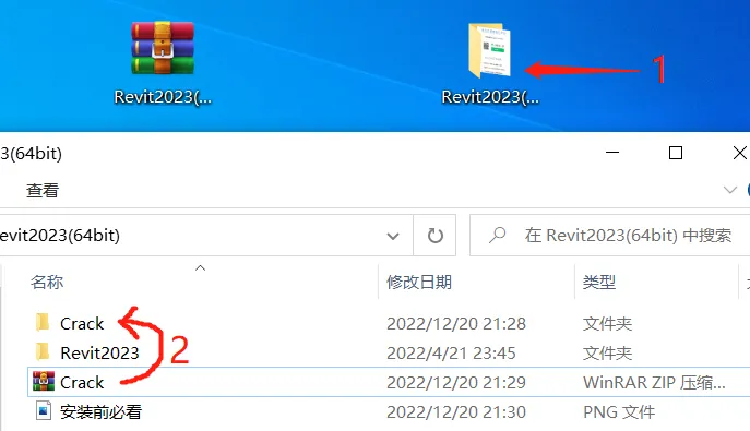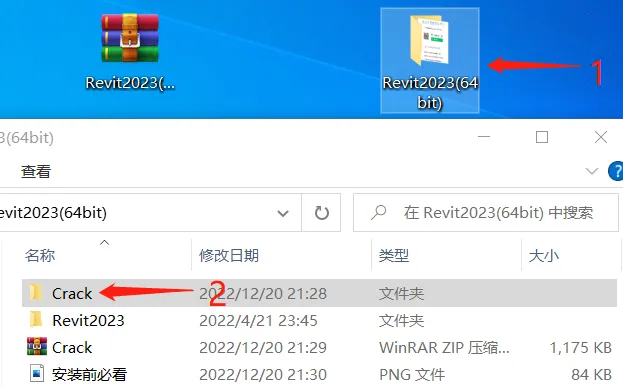 3、打开解压后的【Revit2023(64bit)】文件夹,将【Crack】也解压到当前文件夹备用。