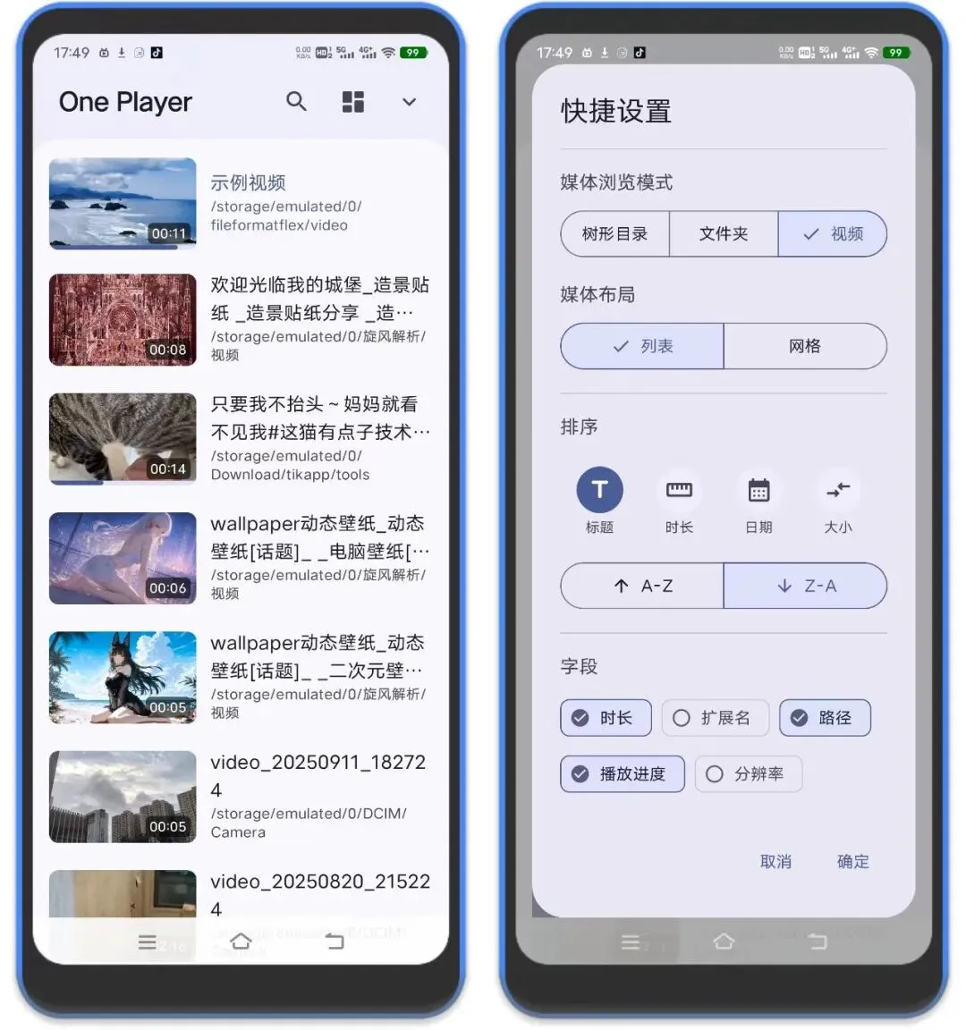1、这是一款非常强大的本地视频播放器,秒杀手机自带的。无广告、无会员、轻量流畅、功能专业、界面现代,专注本地视频播放体验,自动扫描手机本地视频。可以调整首页展示方式,媒体布局,排序等!