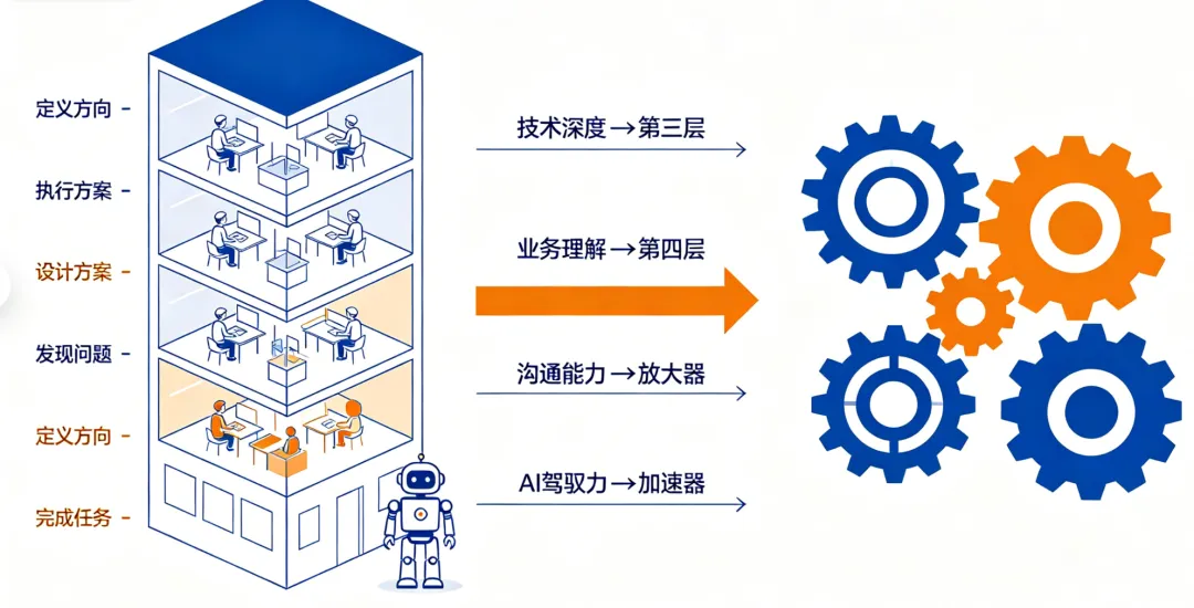 我笑了笑没说话。但那天晚上,我认真想了一个问题——不是"AI会不会替代我",而是"我每天的工作,到底在第几层?"