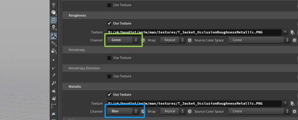 如果是使用了特定通道的贴图,需要在channel一栏选择通道