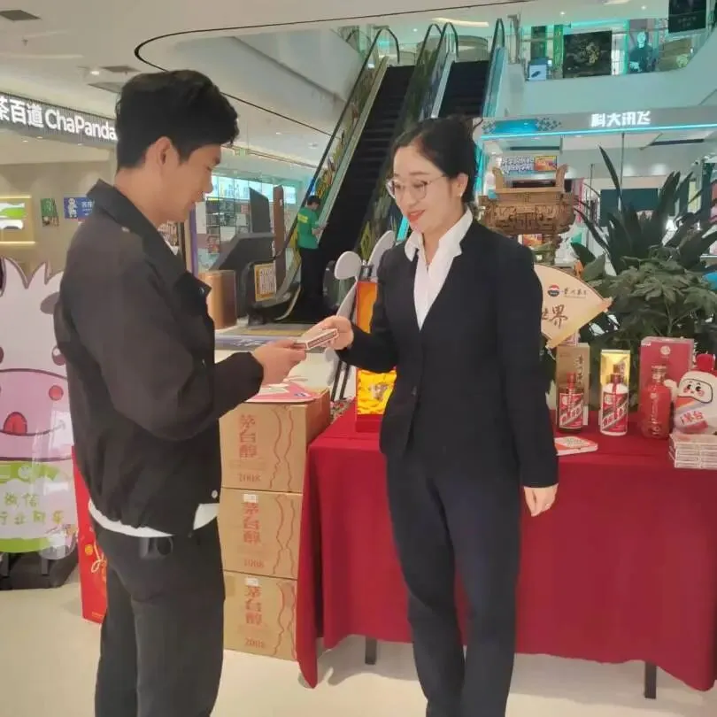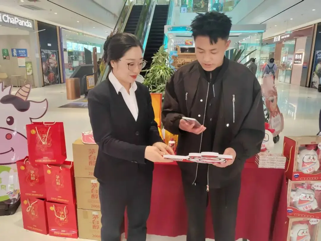 活动现场,工作人员主动在展位周边、商场通道开展精准引流,针对驻足咨询的消费者,工作人员提供一对一专属服务,快速指导完成i茅台APP下载、手机号注册与实名登录,全程严格把控在1-2分钟,完美适配消费者购物节奏,让便捷购酒触手可及。