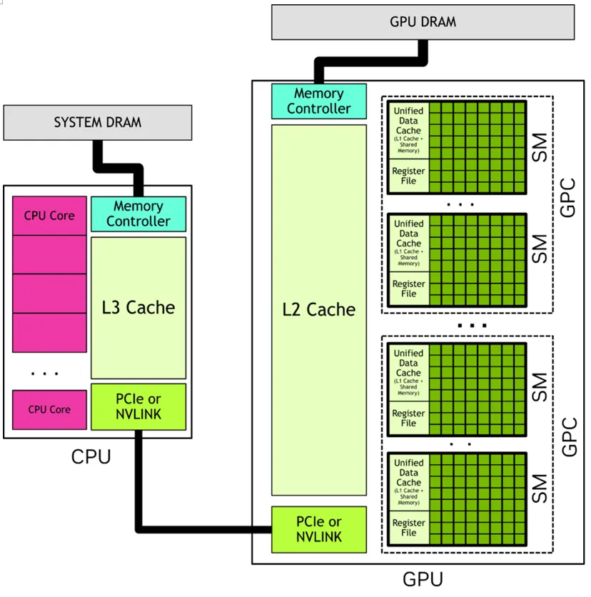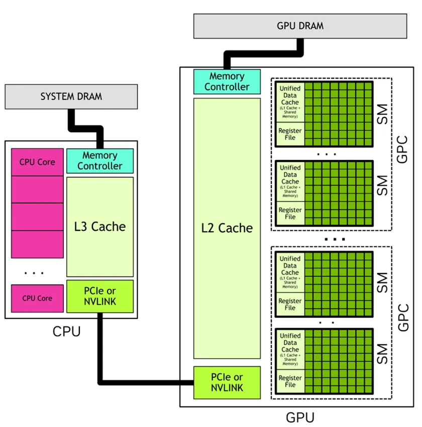 CPU 访问系统内存、GPU 访问显存都极快,但跨设备访问(CPU 读显存、GPU 读系统内存)非常慢。所以高性能优化的第一步,不是优化指令,而是让数据尽量停留在最合适的位置,减少来回搬运。
