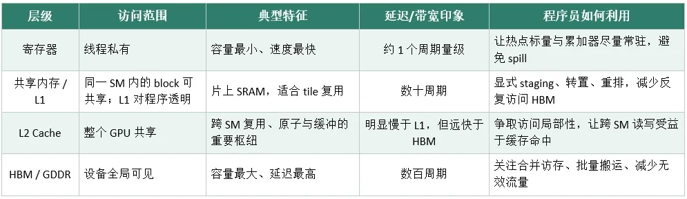 高性能内核的本质,就是把热点数据尽可能放在更靠近计算单元的地方,减少对慢速显存的访问。