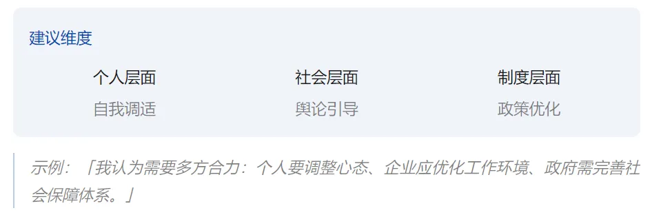 提出切实可行的解决方案,展现建设性思维。建议要具体、有针对性,避免空泛口号。