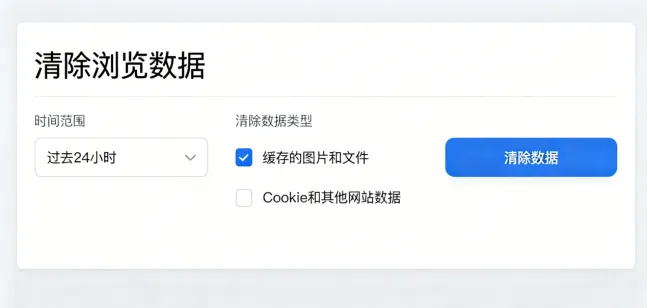 ✅ Edge专属:隐私和安全 → 点击【清除浏览数据】 → 勾选“缓存的图片和文件”“Cookie和网站数据” → 时间范围选“所有时间” → 点击【清除】