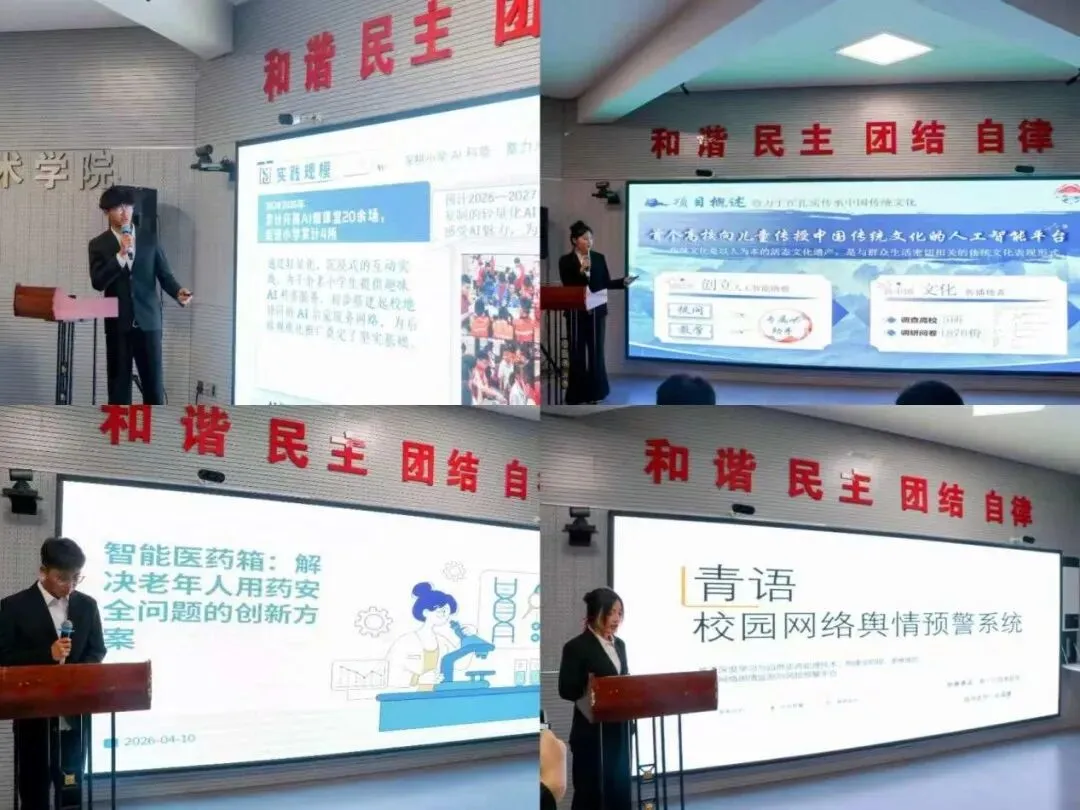 比赛现场氛围热烈,35个参赛项目依次登台展示,项目覆盖先进制造、新一代信息技术、生物医药与健康科技、新能源新材料、现代农业与食品科技、新消费与文化创意、现代服务与社会治理等多个赛道,紧扣专业特色与社会需求。各团队以清晰的逻辑、完整的方案、扎实的技术呈现创新成果,充分展现了软系学子良好的精神风貌与过硬的专业素养。