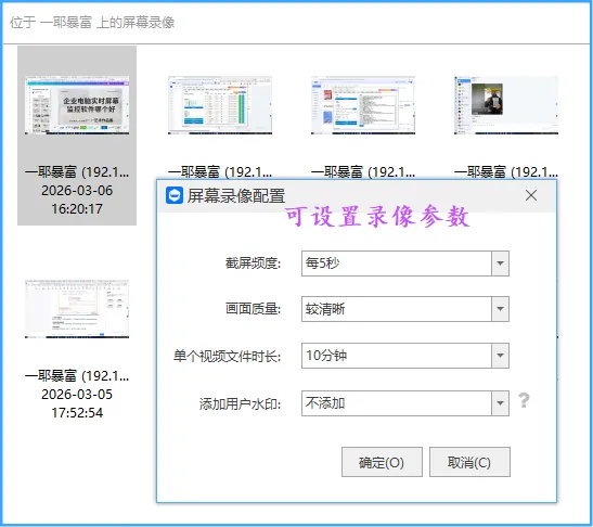 自动录制电脑上的一切操作,同样可以根据需要设置参数,比如视频清晰度、截屏频度等,也能指定程序运行时录屏。